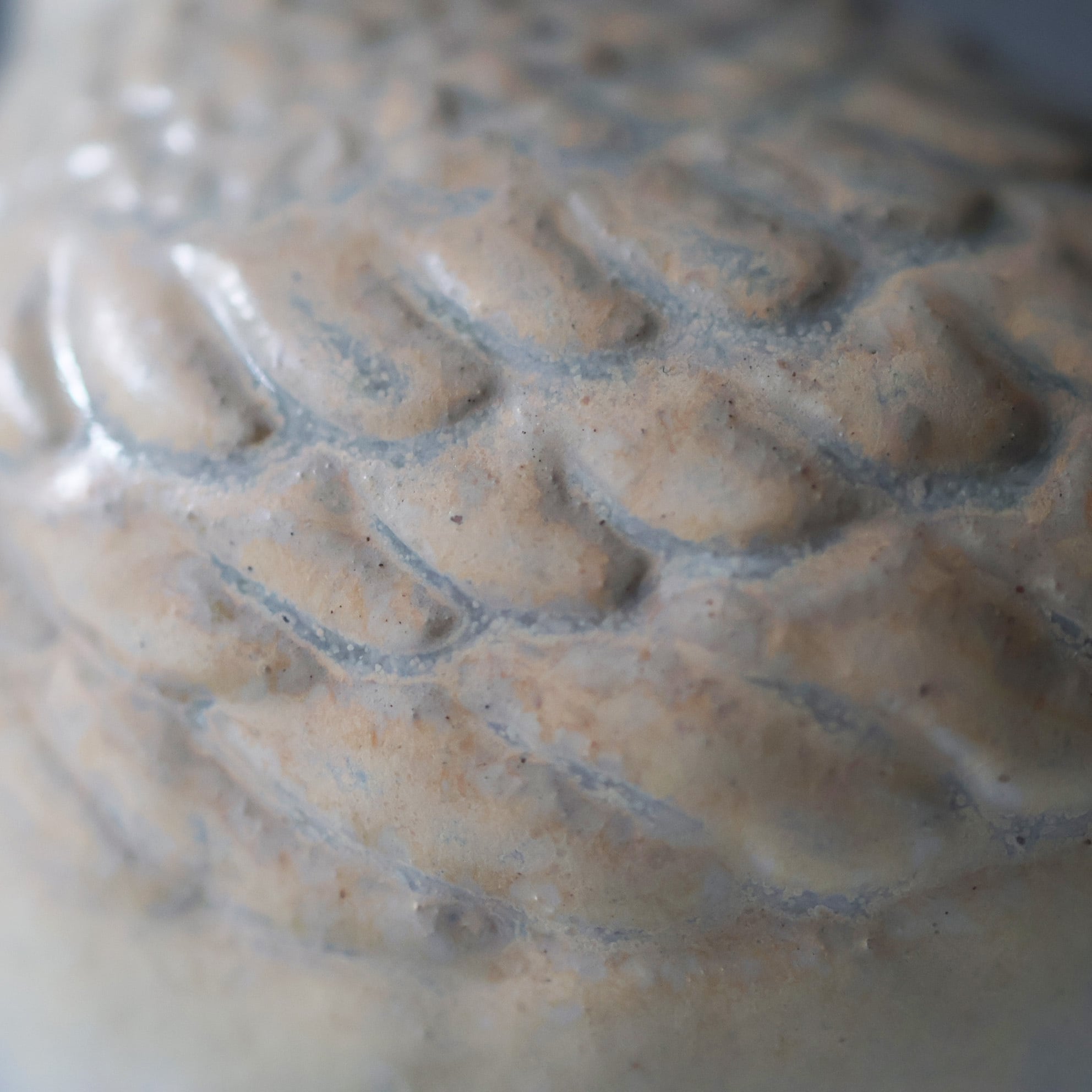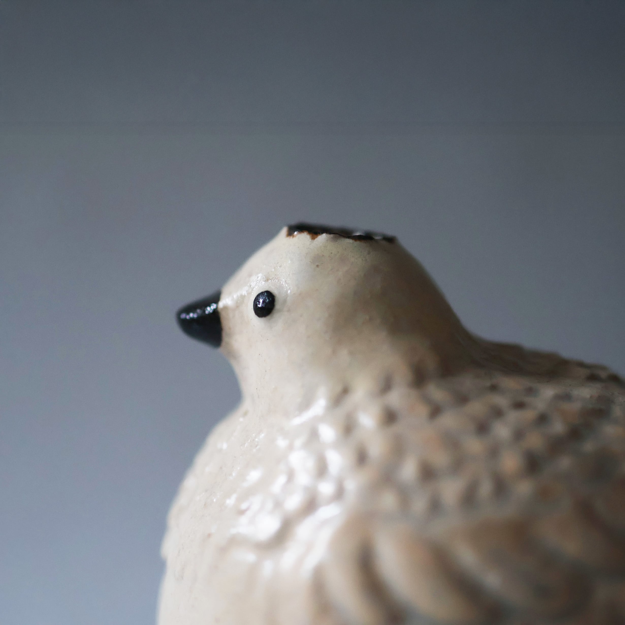 羽部分に結晶の釉薬がかかっています。